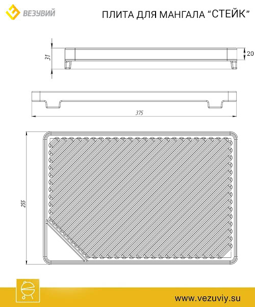 Плита «Гриль» идеально подойдет для мангалов Везувий «Надежный 700», «Надежный 1000» и «Надежный плюс». Но ее также можно использовать и с другими мангалами.