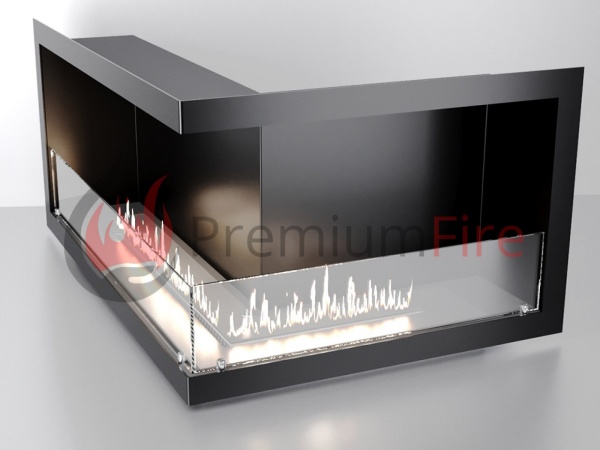 Биокамин Угловой 940 х 640 GlASS black встраиваемый