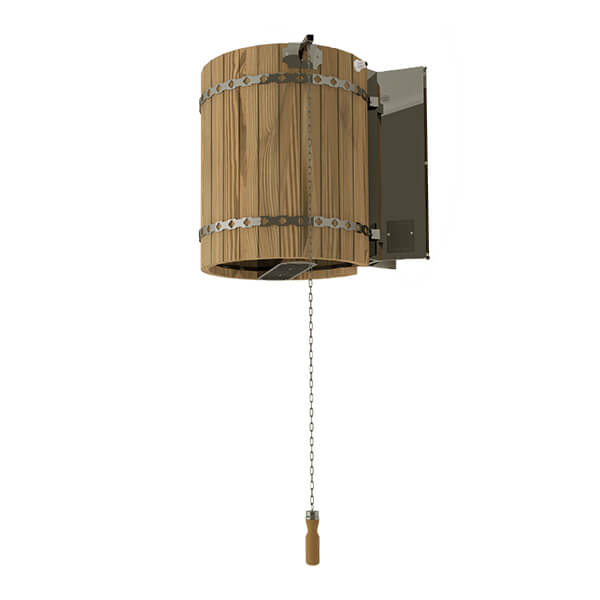 У обычных обливных ведер объем воды составляет 10-12 литров, что явно недостаточно для эффективного и единовременного охлаждения тела. В результате возникает дисбаланс между разогретыми и охлажденными его участками. В обливном устройстве «Ливень®» запас воды составляет приблизительно 50 литров (в зависимости от исполнения), что эффективно позволяет охладить тело после самого интенсивного парения. Специальный рассекатель формирует поток изливающейся воды таким образом, чтобы полностью охватить тело человека и охладить его.