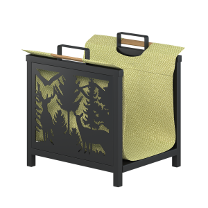 Дровница предназначена для переноски запаса дров и хранения из в помещении, возле печи, камина или отопительного котла. Дровница изготовлена из стального квадрата 25 миллиметров, окрашено чёрной кузнечной краской, устойчивой к механическим повреждениям. Прорезной узор сделан в металлическом листе, выполняющем роль вставок в боковых стенках. В дровнице можно удобно размещать дрова длиной до 45 сантиметров. Также в дровницу можно положить сумку для переноски дров Везувий.