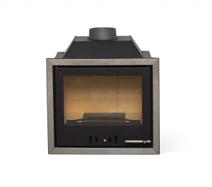 - Компактная каминная топка привлекательного современного дизайна с декоративными элементами из нержавеющей стали.