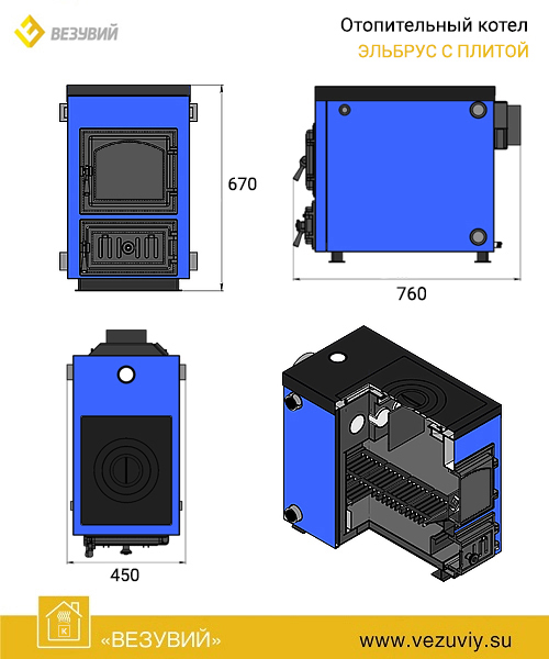 Котел отопительный ЭЛЬБРУС 14, с варочной плитой, ВЕЗУВИЙ