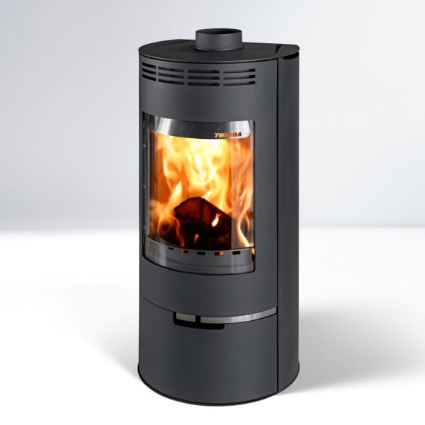 За счет своей конструкции модель очень удобна в расположении: обтекаемые округлые формы и эргономичные габариты позволяют устанавливать очаг как в углу или у стены, так и в любом другом месте помещения – например, в центре. Поверхность стали корпуса исполнена в матовой текстуре и сером цвете, что позволяет успешно интегрировать очаг в различные решения интерьера пространств. Топить печь можно и дровами, и брикетами, мощность изделия составляет 7,5 кВт. Печь оснащена современными системами для высокого качества отопления: регулировками для смены температурных режимов, системой дожига, длительного горения и прочими.