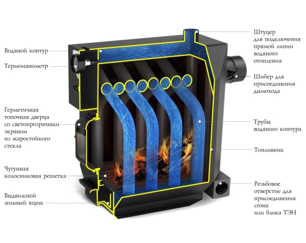 Применяется для подключения водяного отопления открытого и закрытого типа. В качестве топлива используется дрова и каменный уголь. «Гидравлики» предназначены для водяного отопления жилых и нежилых помещений.