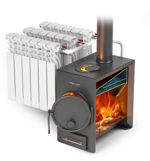 Упоминание слова «батарея» в названии печи прямо указывает на возможность водяного отопления многокомнатных дачных домов или других зданий коммунально-бытового назначения.
