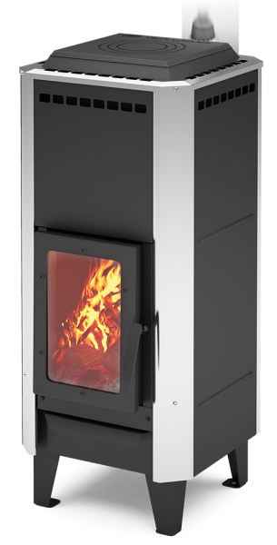 • Дверца с жаростойким стеклом позволяет любоваться игрой пламени в топке.