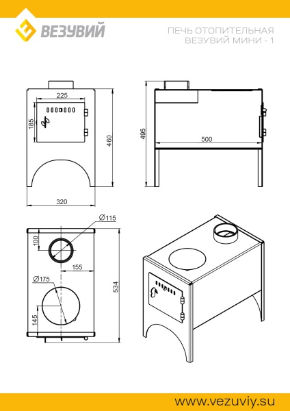 Печь отопительная ВЕЗУВИЙ МИНИ-1 БУРЖУЙКА