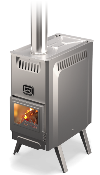 Печь «Алтай» специально разработана для мобильной бани. Монтаж в походных условиях занимает всего пару минут. Для вывода дымохода в потолок фирменной палатки встроен проходной узел из негорючего материала. Для получения пара не нужны камни — встроенные парообразователи «Алтая» дают много лёгкого насыщенного пара уже через 15-20 минут после растопки.