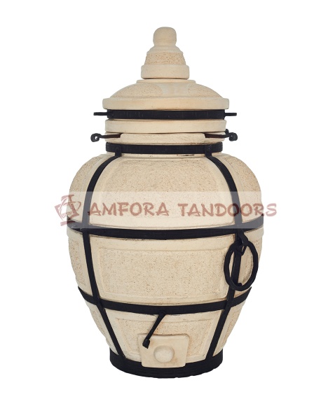 Тандыр Амфора производится из экологически чистых отечественных керамических огнеупорных материалов, обжигается при температуре свыше 1100 градусов Цельсия, для прочности и красоты оковывается металлом. Несмотря на то, что при использовании могут возникать волосяные трещины, стальная оковка с элементами ковки прочно удерживает тандыр. Срок службы тандыра не ограничен, при правильном использовании, он вам прослужит годы и десятилетия.